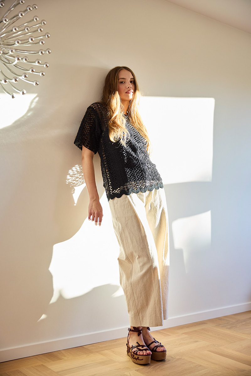 A tactile tension between rustic structures and delicate materials gives the collection a sensuous energy — a feeling of summer that is both gentle and vibrating.